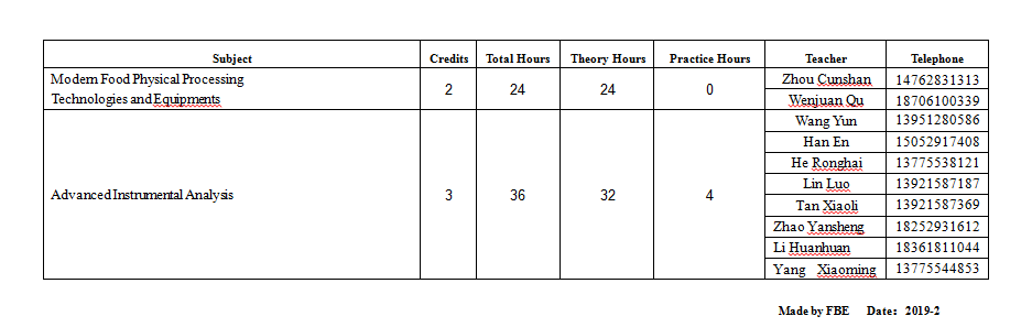 2018-2019(2)Time Table of Specialized Subjects for PhD. FBE candidates in Academic Year