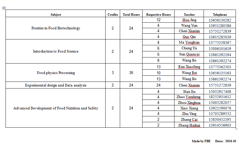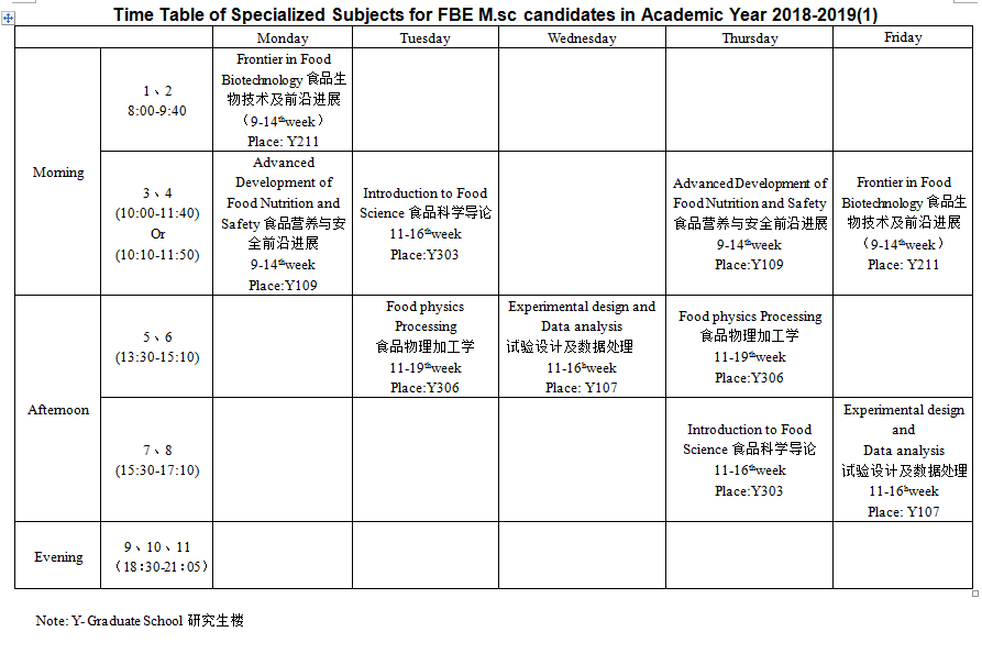 Time Table of Specialized Subjects for FBE M.sc candidates in Academic Year 2018-2019(1)