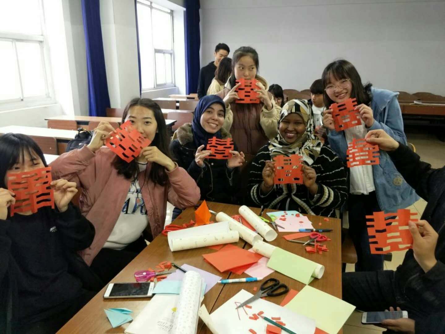 This event is based on handcrafting, The main cutting tools are simple: paper and scissors. This event was an opening gate for communication for Chinese and foreign students by exchanging their handcrafts with expressing wishes with paper cuttings and also it allows the international students to learn some simple Chinese handmade paper-cuts. A total of 17 Chinese students and 6 international students participated in the event.