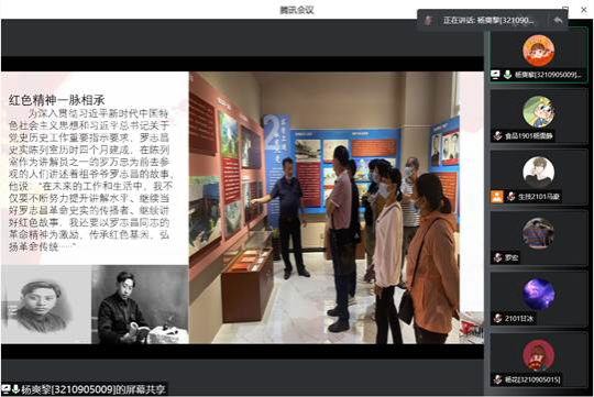 参会的各位团员青年分组依次对《五四礼赞》、《青春无悔》、《我骄傲我是中国人》等经典作品进行诵读,展现了大家学习红色经典文化的热情,彰显了在校青年的青春活力。随后,梁景贺、杨爽黎等同学讲述了彭德怀、罗志昌等优秀党员的故事,大家一致表示这些革命先辈用鲜血和生命书写着对革命事业的坚定执着,始终把对党忠诚立在前头,烙在心中,融入血液,他们的一生永远值得青年大学生铭记和传承。