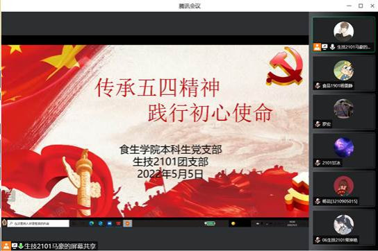 本科生党支部和生技2101团支部联合开展“传承五四精神 践行初心使命”主题党日活动,活动以线上方式进行。