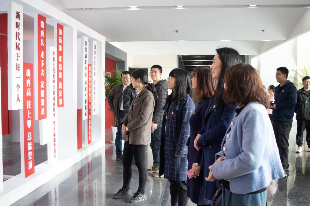 “主题展”现场,院党委副书记、院长邹小波带领全体党员面向党旗重温了入党誓词。全体参观党员还跟随讲解员一同参观学习了主题展,并纷纷在留言墙、拍照框等互动区域拍照留念、留言互动。