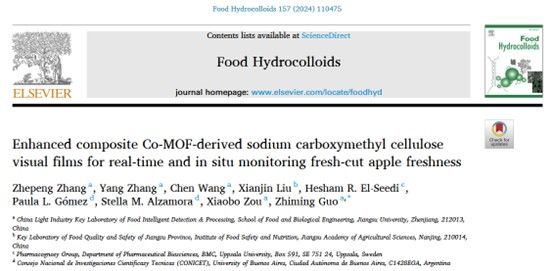 郭志明教授课题组在国际Top期刊《Food Hydrocolloids》(Q1,IF2023: 11.0)上发表论文“Enhanced composite Co-MOF-derived sodium carboxymethyl cellulose visual films for real-time and in situ monitoring fresh-cut apple freshness”。91大神