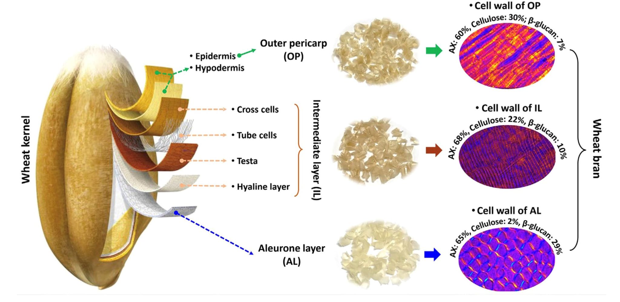 小麦麸皮是我国和世界的大宗主粮副产物,在我国年产量超过2500万吨,是目前加工全麦食品、膳食纤维及功能性多糖的主要原料。然而,目前对小麦麸皮结构层的物理结构、化学组成、电学和机械力学等物理特性缺乏重视和系统综述,造成了当前小麦麸皮加工效率低下,资源浪费严重。本文从麸皮结构层的角度阐述小麦细胞壁阿拉伯木聚糖的结构、化学组成、层间分布、分离提取新技术、营养功能特性及食品应用。此两篇综述论文创新性地从多层复合结构层的角度,系统综述了小麦麸皮及其细胞壁的物化特性和加工利用的理论和技术进展,将为小麦麸皮等谷物麸皮的创新增值加工和食品化利用提供重要理论技术指导。