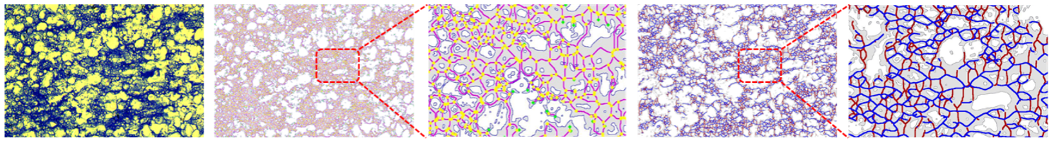 面条是一个由淀粉和面筋网络组成的复杂系统,膨胀的淀粉嵌入面筋网络中,它们相互影响并共同决定面条的食用品质。淀粉是小麦粉中含量最高的成分,其对面条食用品质的影响可通过它如何影响面筋网络的形成而实现。以往研究主要通过分析面筋网络结构参数(巯基,二硫键,蛋白质分子量等)表征其形成程度,会破坏样品原始状态。徐斌课题组将微观结构与MATLAB图像处理相结合,实现了面带和煮后面条微观结构的定量对比,且图像处理所得参数可有效表示面条的食用品质差异。本研究为推动面条食用品质的可视化和数字化奠定了理论基础,具有一定的行业发展应用前景。