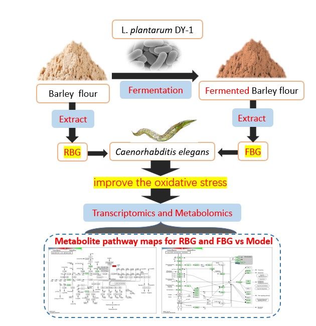 β-葡聚糖是大麦中的重要功能因子。大麦经植物乳杆菌L. plantarum DY-1发酵后,其结构与功能均发生了改变。论文以秀丽隐杆线虫为受试模型,探讨了未发酵大麦β-葡聚糖(RBG)和发酵大麦β-葡聚糖(FBG)对氧化应激防御效果的影响及可能的作用机制。论文通过代谢组学对FBG和RBG参与调控的差异代谢产物进行筛选及鉴定,并结合转录组数据进行联合分析,明确了FBG与RBG对机体氧化应激调控的区别主要体现在花生四烯酸代谢途径。本研究可为明确大麦β-葡聚糖作为抗氧化膳食补充剂或食品添加剂的进一步应用提供理论依据。