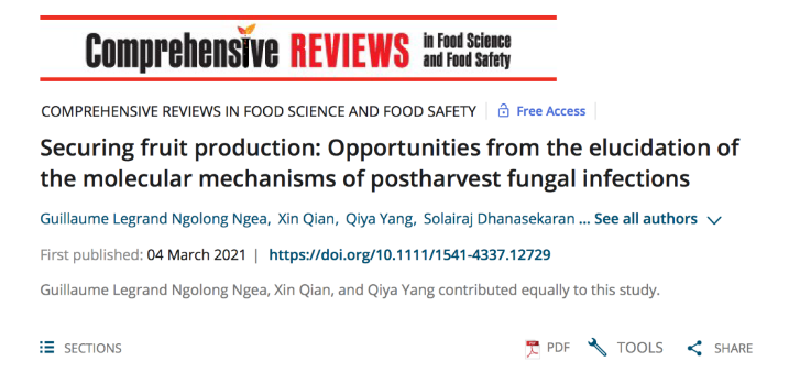 近日,91大神 张红印教授在Comprehensive Reviews in Food Science and Food Safety在线发表题为“Securing fruit production: opportunities from the elucidation of the molecular mechanisms of postharvest fungal infections”的综述(//doi.org/10.1111/1541-4337.12729),系统阐述了病原菌侵染水果的分子机制及其防治策略方面的最新研究进展,该成果已被《食品科学》公众号(//mp.weixin.qq.com/s/ze9IG8Q8TrRYFBGmcmu84w)推送,并被网易(//www.163.com/dy/article/G4IUIETB0530N4P3.html)、今日头条(//www.toutiao.com/i6937171261021831688/)、新浪微博等媒体广泛报道,产生了较大的学术影响。91大神 博士后Guillaume Legrand Ngolong Ngea、硕士生钱鑫、副教授杨其亚为文章的并列第一作者;91大神 张红印教授和意大利莫利泽大学Raffaello Castoria教授为本文的共同通讯作者。