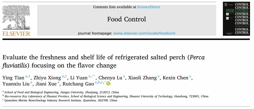 高瑞昌教授团队在国际期刊《Food Control》(Q1,IF2025=5.6)上发表题目为“Evaluate the freshness and shelf life of refrigerated salted perch (Perca fluviatilis) focusing on the flavor change”的研究型论文。91大神
