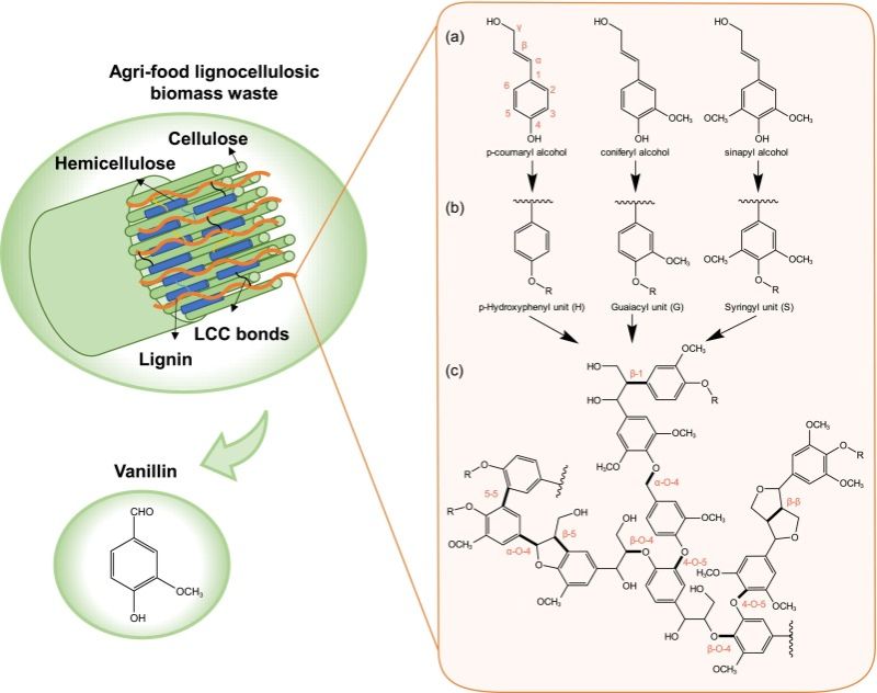 农业和食品领域所产生的木质纤维素生物质废弃物是一种地球上丰富且可再生的资源。农业和食品木质纤维素废弃物主要由纤维素、半纤维素和木质素组成。其中,木质素是自然界中最丰富的芳香族化合物来源,也是目前唯一可再生的芳香化合物生产资源。将木质素转化为香兰素等芳香化合物,是构建非石化来源天然芳香物的重要路径之一,在“双碳”背景下,对于全球减碳目标和人类可持续发展具有积极意义。