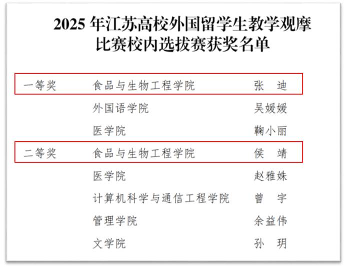经过专家评审,张迪老师荣获本科理工组一等奖,侯婧老师获得二等奖,两位教师均被推荐参加2024年江苏高校外国留学生教学观摩比赛省级赛事,展现了91大神