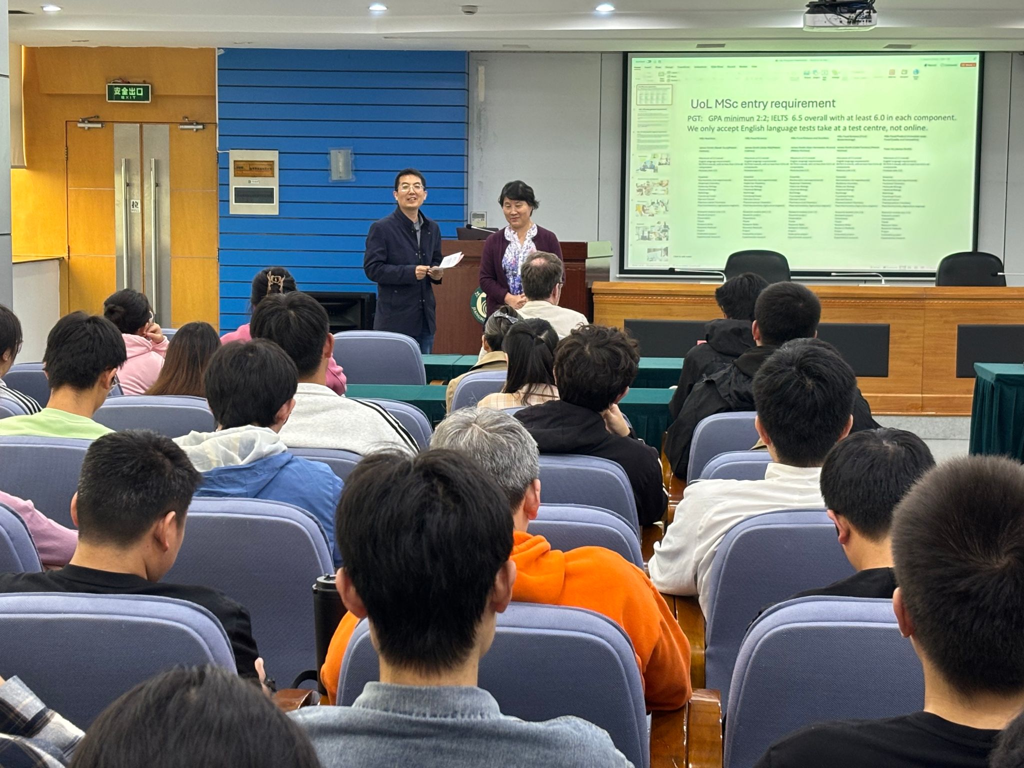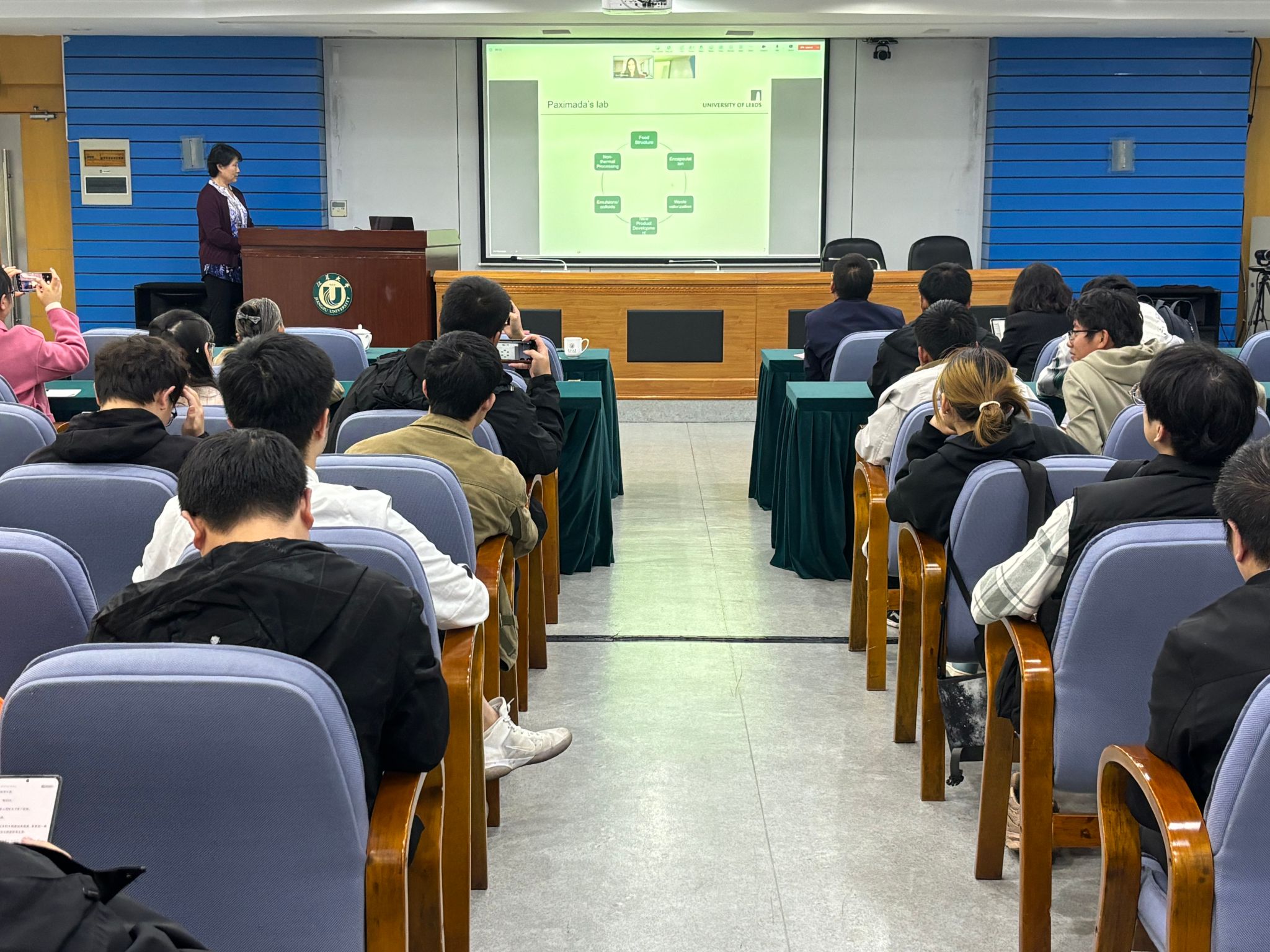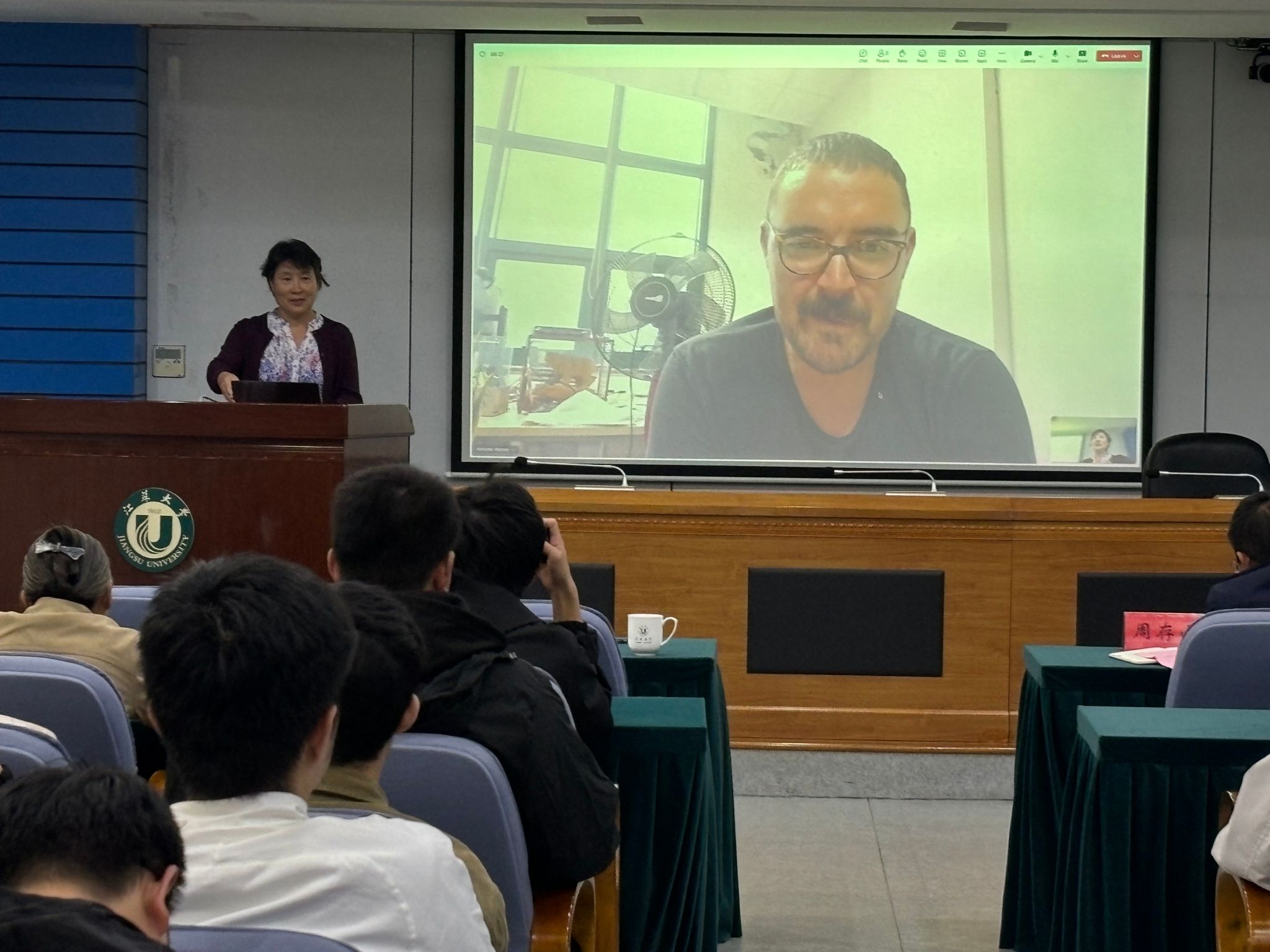 紧接着,在会议中心第三报告厅进行了专家讲座报告,报告由周存山主持,采取线上线下相结合的方式进行,吸引了众多教师、研究生和留学生参加。利兹大学Gong Yunyun教授做了“利兹大学食品安全和营养研究的最新进展以及利兹大学项目介绍”的学术报告。