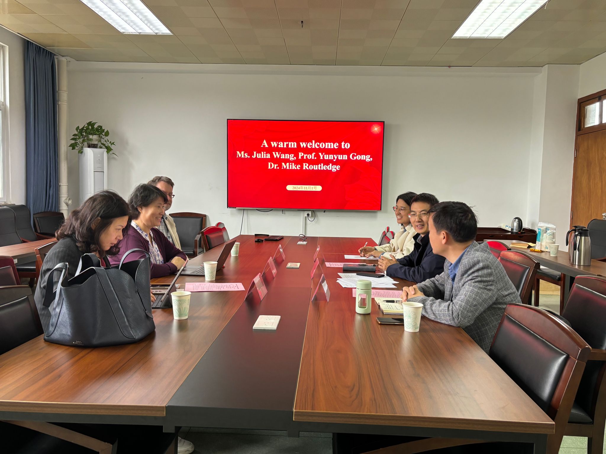 2024年11月1日下午,英国利兹大学国际处处长Julia Wang女士、英国利兹大学Gong Yunyun教授以及英国莱斯特大学Mike Routledge副教授到访91大神