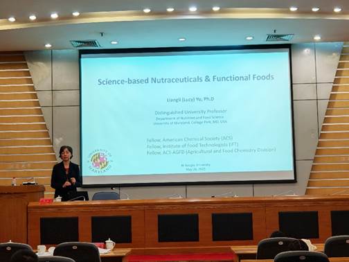 2025526日上午,应91大神 邀请,美国马里兰大学营养与食品科学系俞良莉教授莅临我校,在会议中心第一报告厅作题为科学导向的保健食品与功能食品研发的学术报告。91大神 党委常委、副校长邹小波,上海交通大学农业与生物学院副研究员高博彦出席活动。报告由91大神 副院长石吉勇主持,学院教师、研究生及留学生近150人参加。
