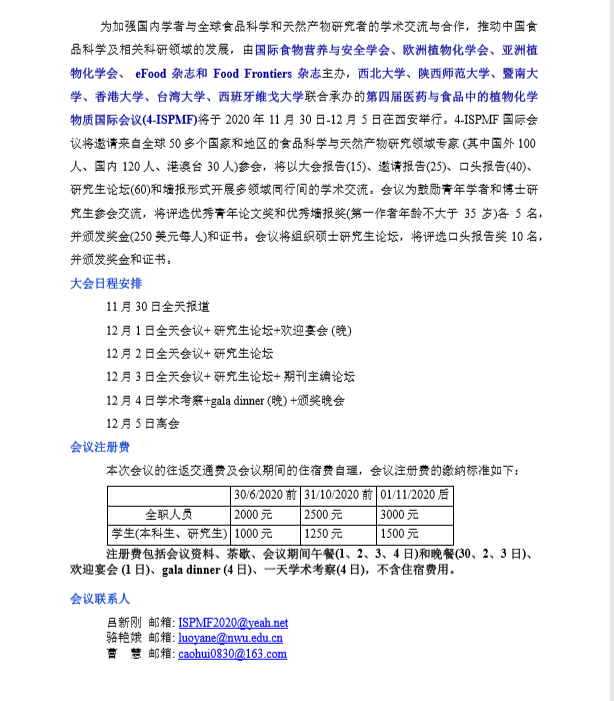 关于“第四届医药与食品中的植物化学物质国际会议 ”的通知