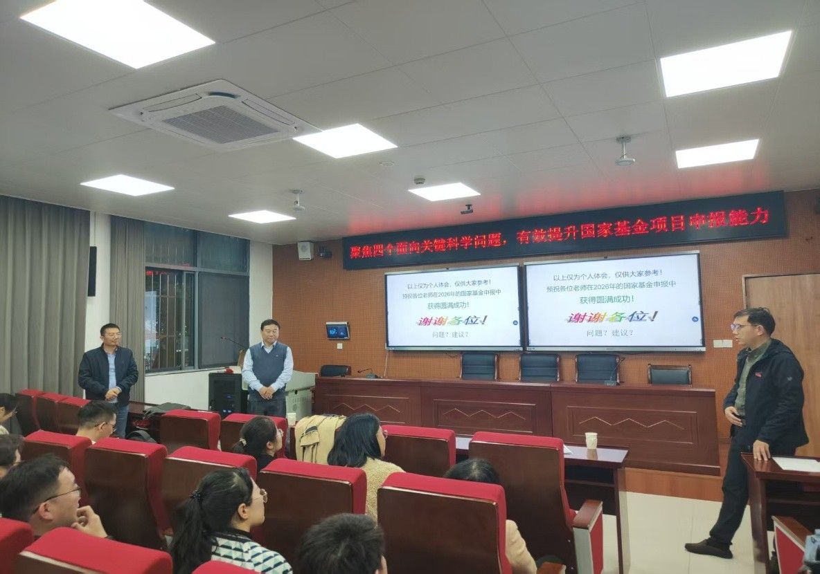 等三院联合主办的“2026年度国家自然科学基金申报动员会”顺利召开。会议特邀浙江工业大学佘远斌教授担任主讲嘉宾,聚焦基金申报的核心环节—申报书撰写,展开了系统而深入的专题指导。